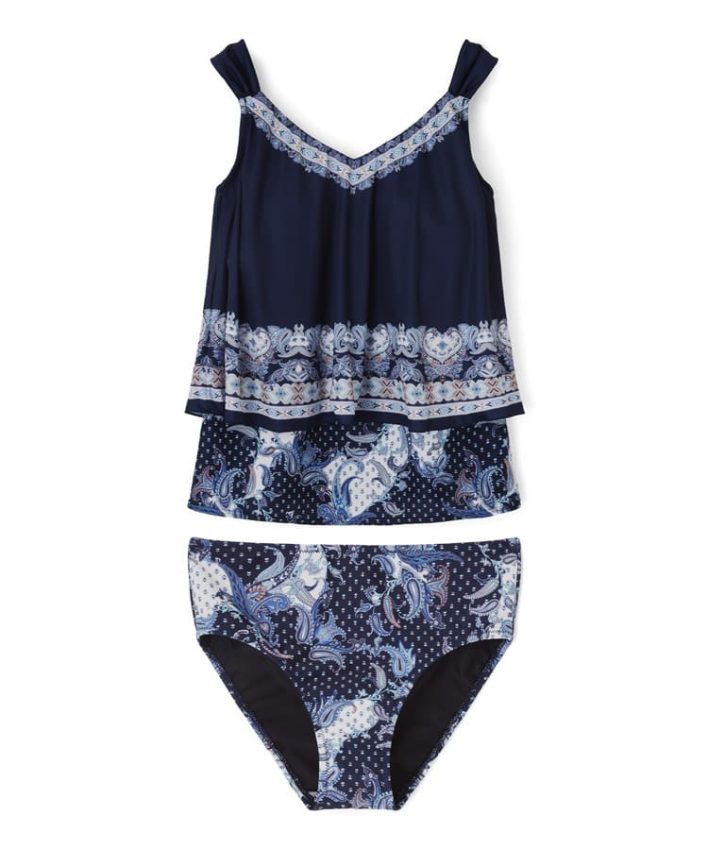 ゆったりシルエットのタンキニはボディ部分が2重構造。