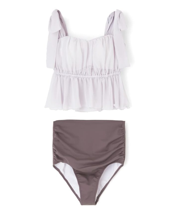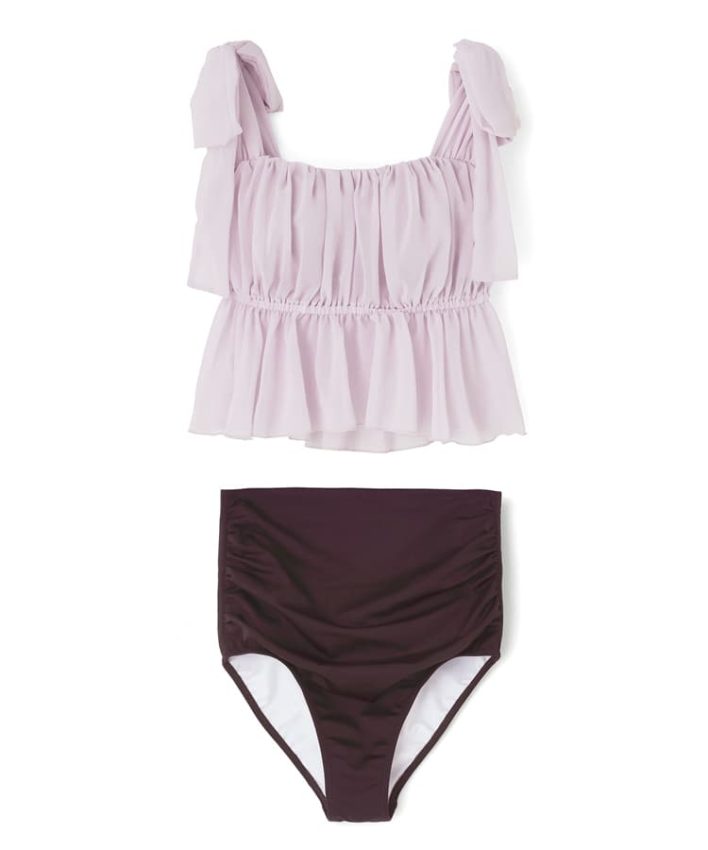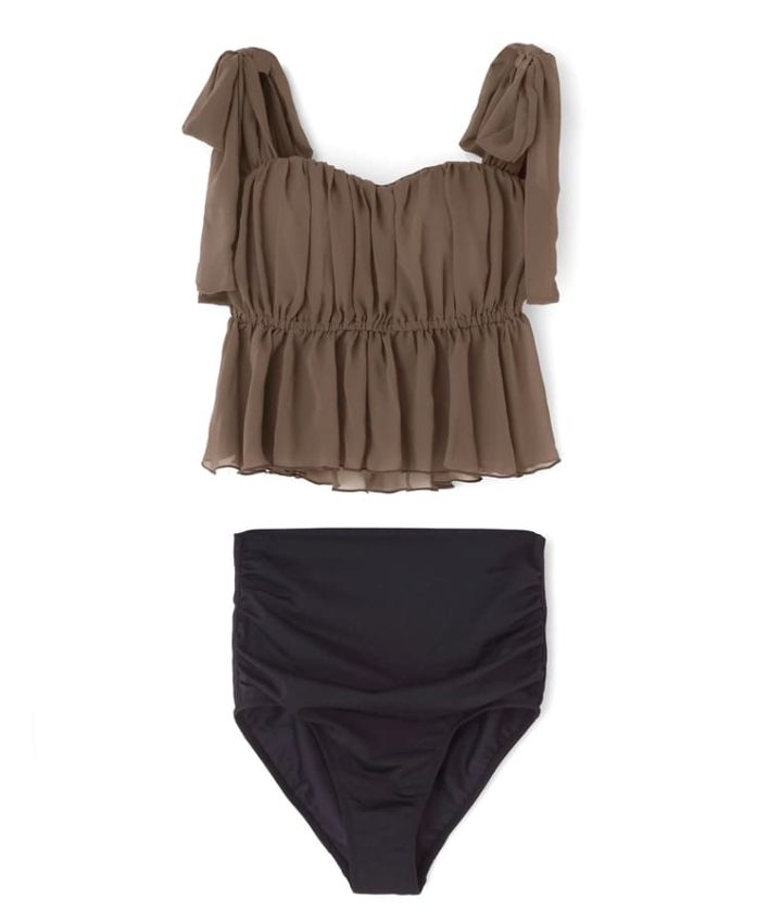 フェミニンなギャザーデザインと
