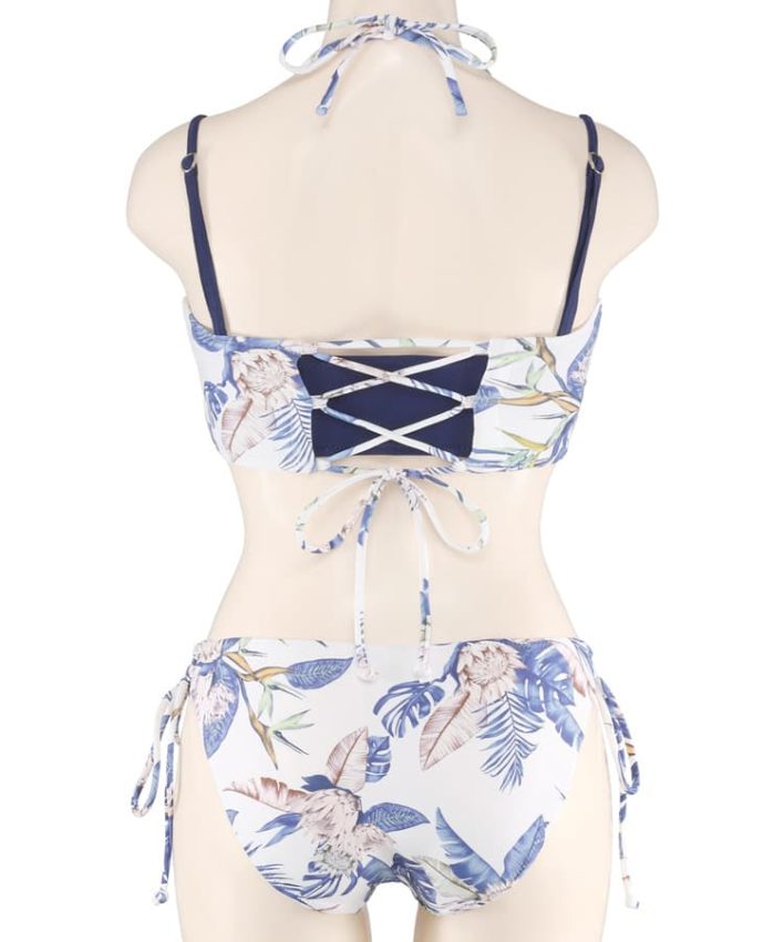 リゾートに映えるトロピカルプリントの盛れる3点セットビキニです。
