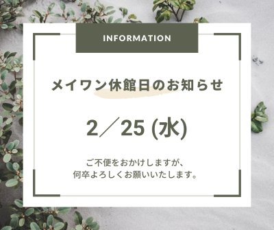 ✧メイワン休館日のお知らせ✧